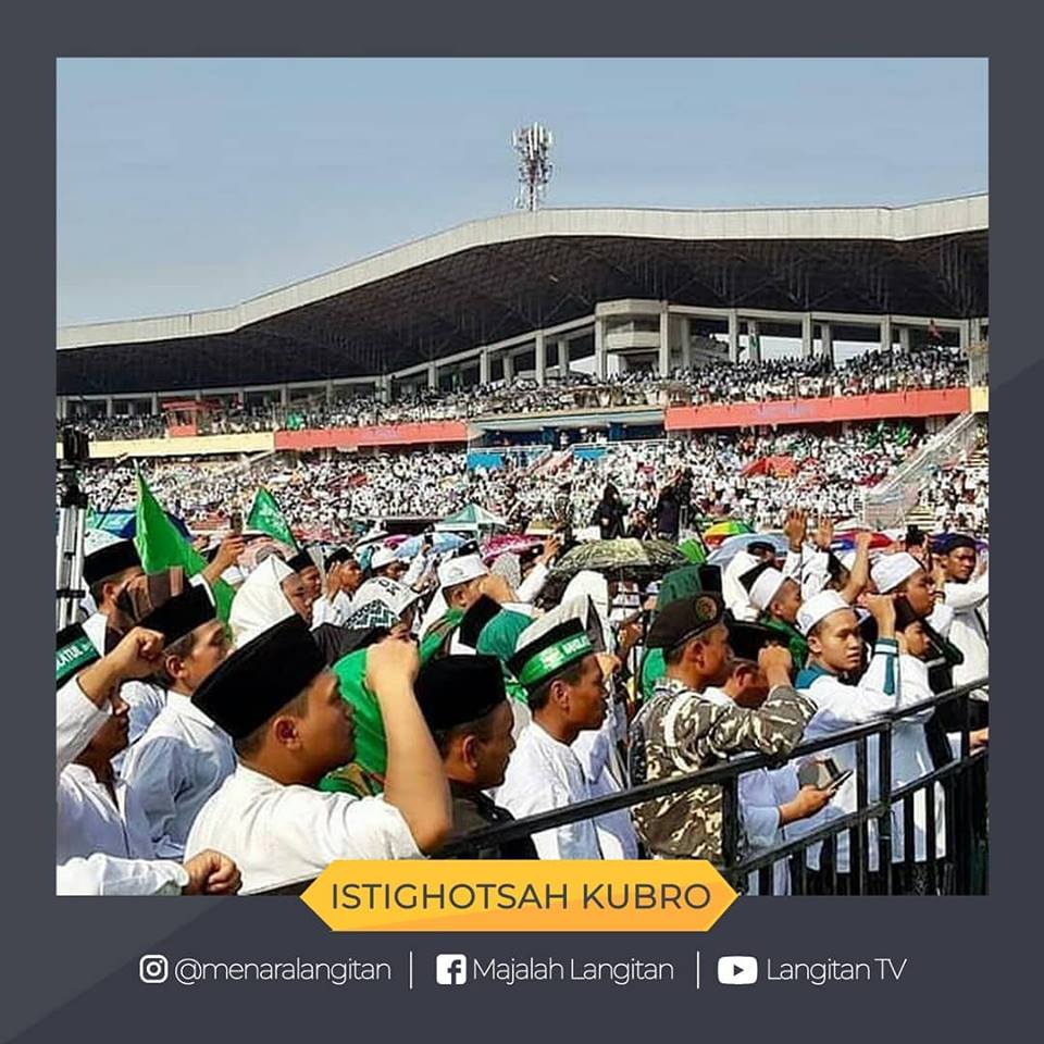 Meski dibawah terik matahari, jamaah tetap berdzikir dan bersholawat dengan khidmat dipimpin oleh para kiai sepuh.