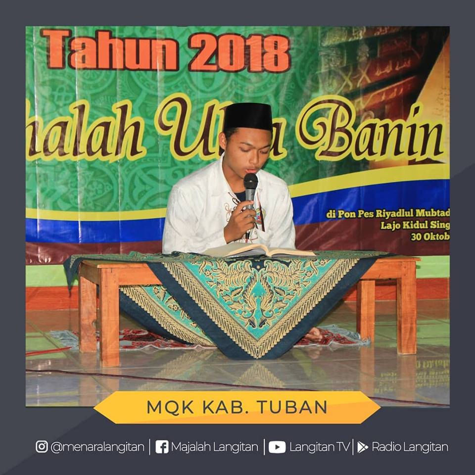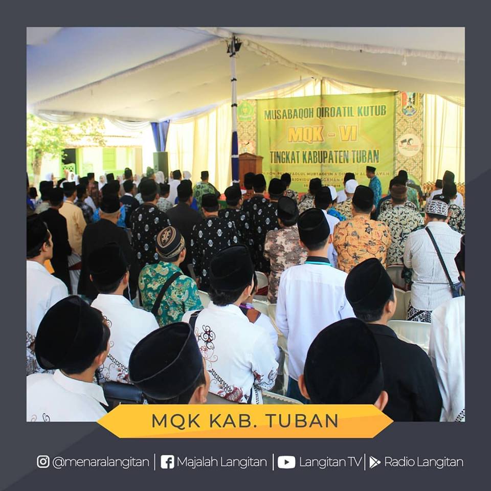 Alhamdulillah, delegasi Ponpes. Langitan menjadi juara umum dalam MQK (Musabaqoh Qiroatul Kutub) VI Tingkat Kabupaten Tuban yang dilangsungkan pada Selasa (30/10) di Ponpes. Riyadlul Mubtadiin dan Diniyah Al-Hidayah, Lajokidul, Singgahan, Tuban.