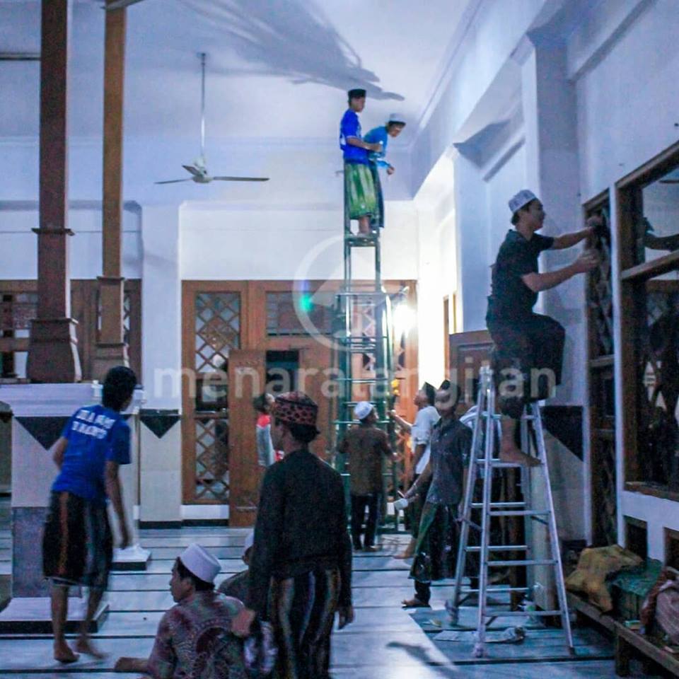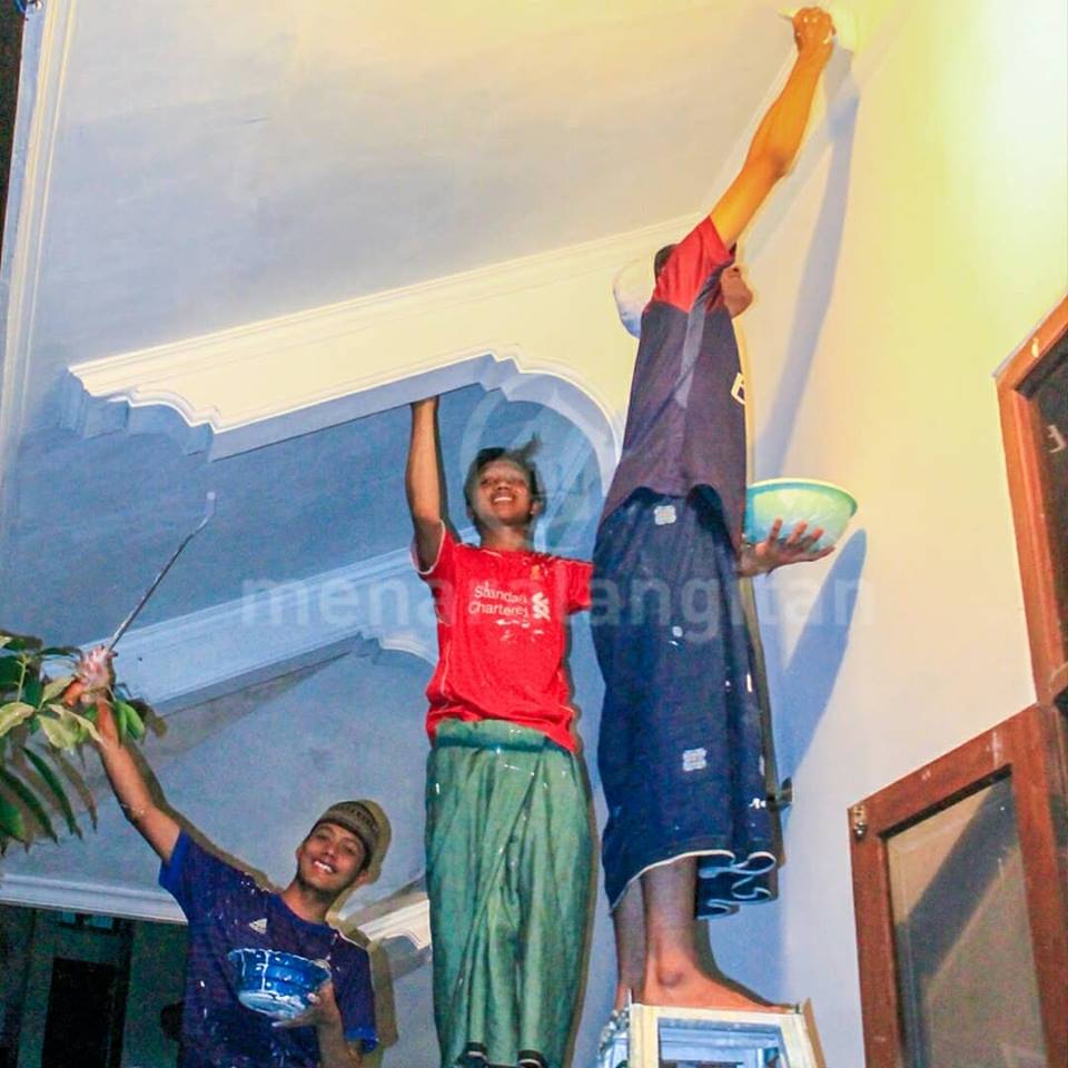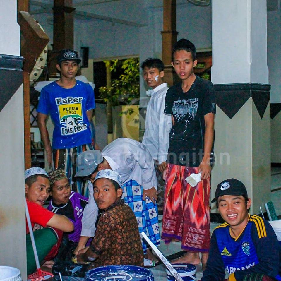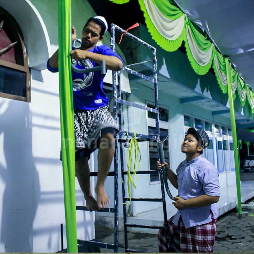 Mulai dari pengecatan asrama, masak, pemasangan terop, sound system hingga papan penunjuk jalan.